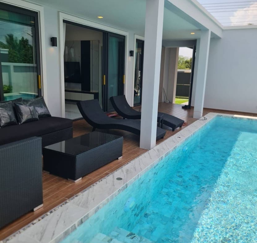 Discover a modern luxury pool villa located in the peaceful and convenient area of Soi 112, one of the most popular residential zones in Hua Hin.