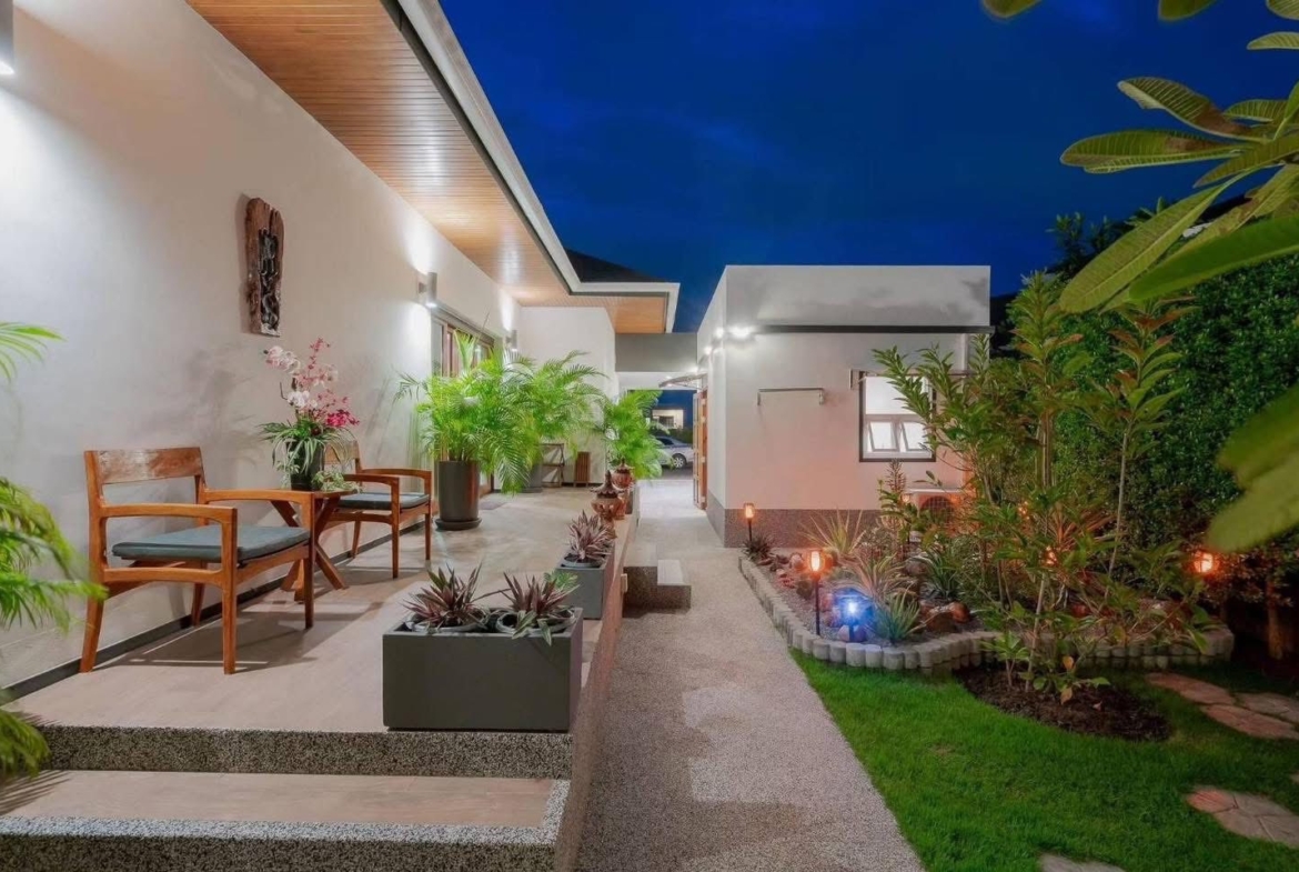 A stunning luxury pool villa with private mountain views, located in a peaceful residential area just 10 minutes from Hua Hin town center. This beautifully maintained villa is fully furnished and ready to move in, making it ideal for families or long-stay residents seeking comfort, privacy, and a relaxing lifestyle.